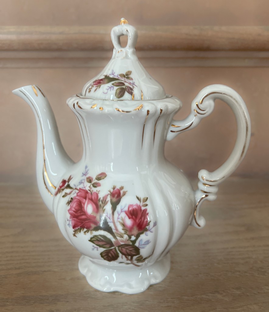While I was looking at that quilt one day, I realized that these repeating elements were similar to writing. You work on your basic story and there are innumerable revisions and improvements once you’ve got that story down. You add details to enhance the readers experience, and—you got it—you repeat some of the details to create more of a cohesive whole to the story. One way I’ve done that in my latest novel is with roses. I didn’t start doing it on purpose, but I had this teapot and it happened organically.
